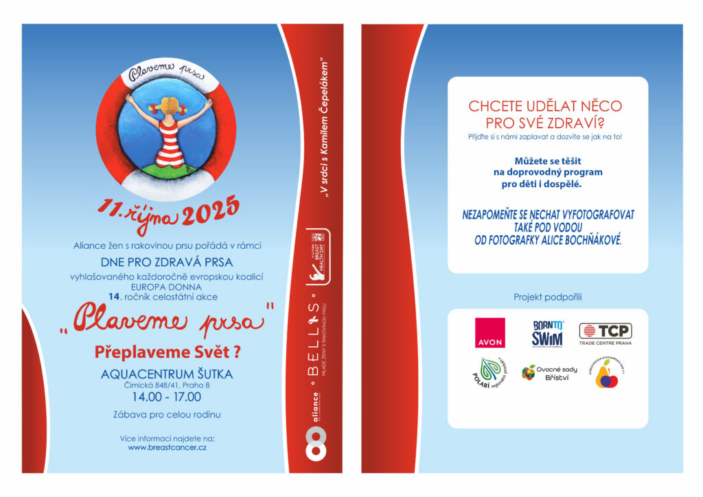 Přeplaveme Svět? Tak zní letošní výzva pro účastníky naší tradiční sportovní akce Plaveme prsa. Dne 11. 10. 2025 poplaveme již po čtrnácté za zdravá prsa a oslavíme tak Den za zdravá prsa aneb Breast Health Day.