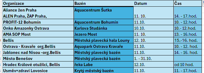 Přijďte si zaplavat, uděláte něco příjemného pro své zdraví a ještě podpoříte pacientky s karcinomem prsu. Těšíme se na viděnou!