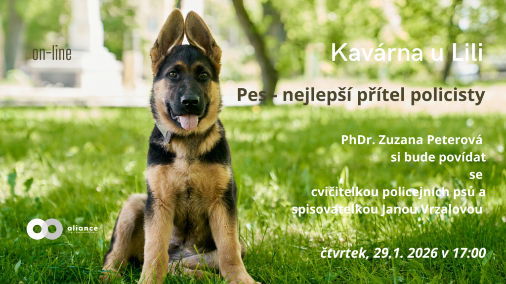 Spolu s paní doktorkou Zuzanou Peterovou Vás srdečně zveme na lednovou Kavárnu U Lili, jejímž hostem bude zkušená cvičitelka policejních psů s více než 20 lety praxe ve výcviku a také spisovatelka Jana Vrzalová. Dozvíte se, jak probíhá výcvik, spolupráce psa s policistou a proč jsou tito čtyřnozí parťáci nenahraditelní.